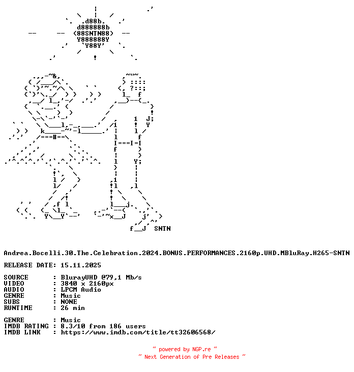 Andrea.Bocelli.30.The.Celebration.2024.BONUS.PERFORMANCES.2160p.UHD.MBluRay.H265-SNTN