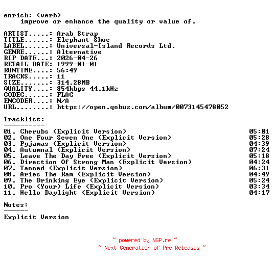 Titel: Arab_Strap-Elephant_Shoe-16BIT-WEB-FLAC-1999-ENRiCH