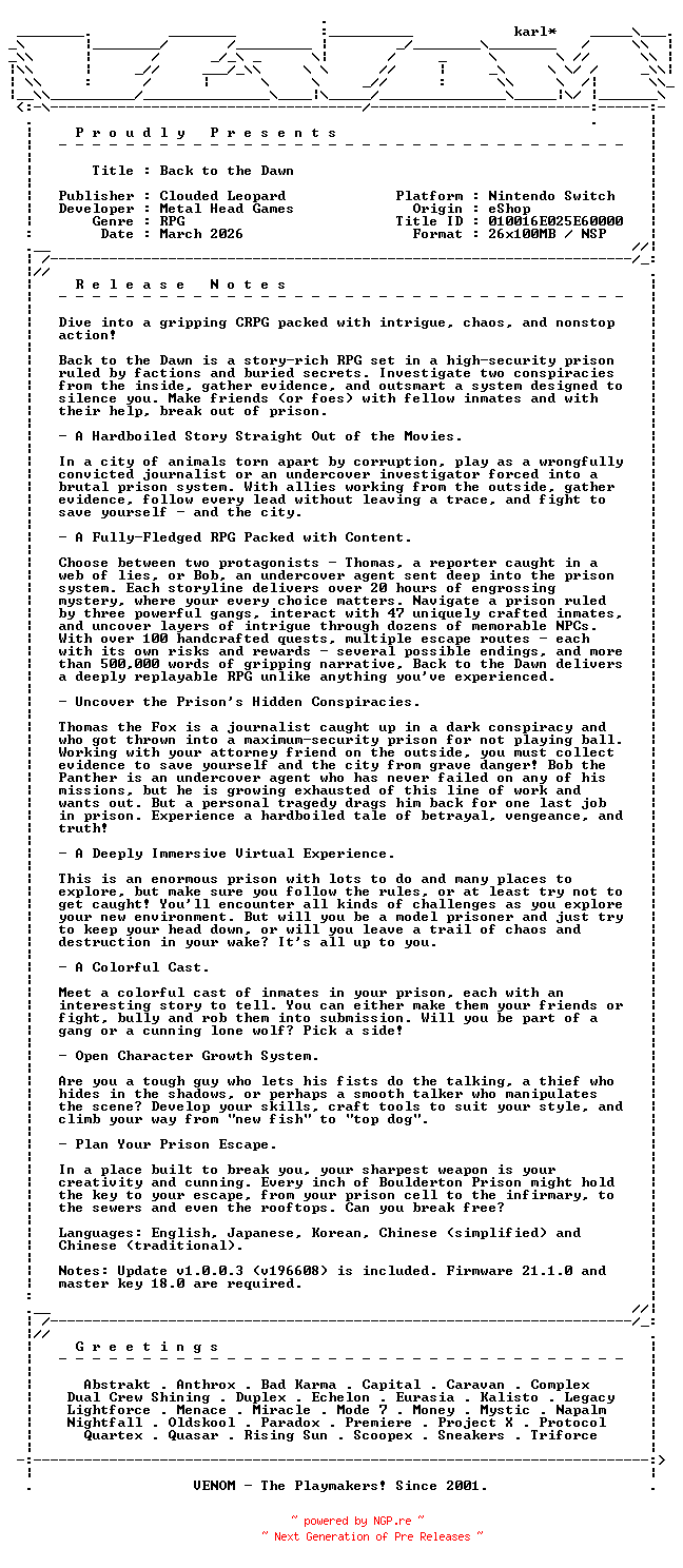 Titel: Back_to_the_Dawn_NSW-VENOM