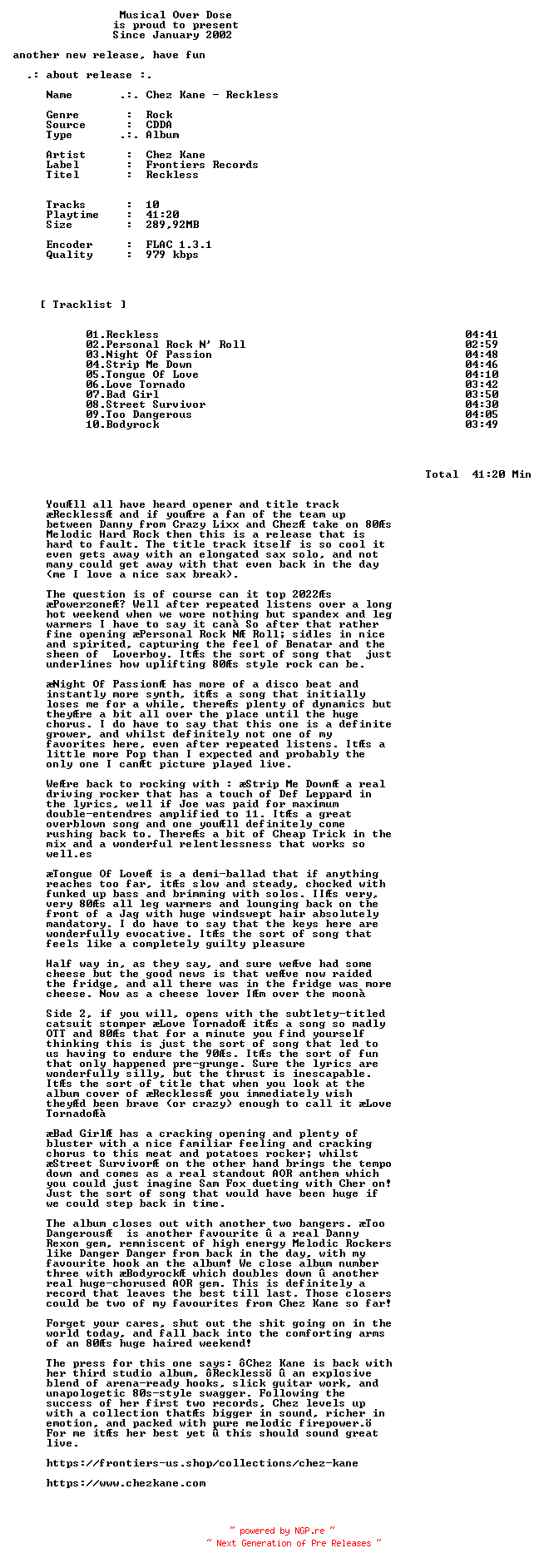 Titel: Chez_Kane-Reckless-CD-FLAC