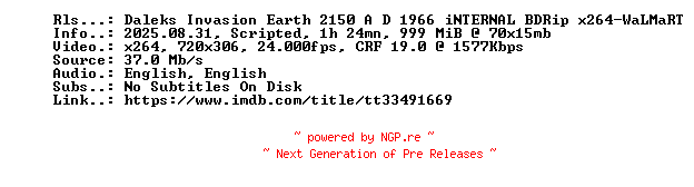 Titel: Daleks Invasion Earth 2150 A D 1966 iNTERNAL BDRip x264-WaLMaRT
