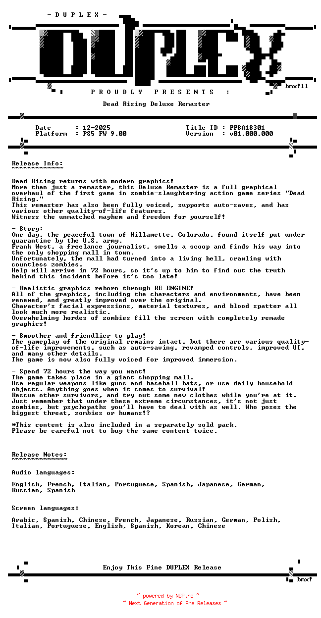 Titel: Dead Rising Deluxe Remaster PS5-DUPLEX