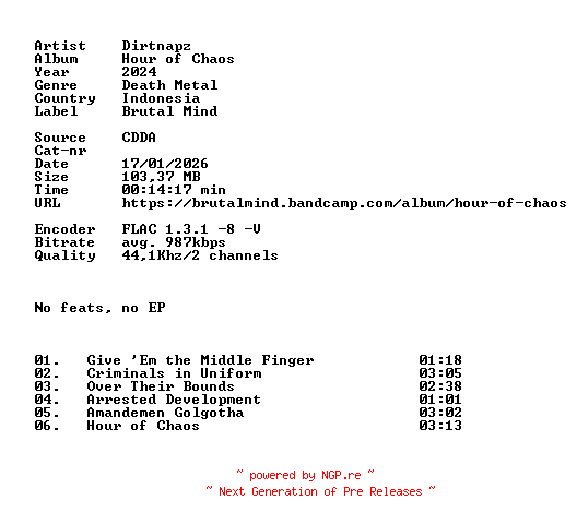 Titel: Dirtnapz-Hour_of_Chaos-CDEP-FLAC