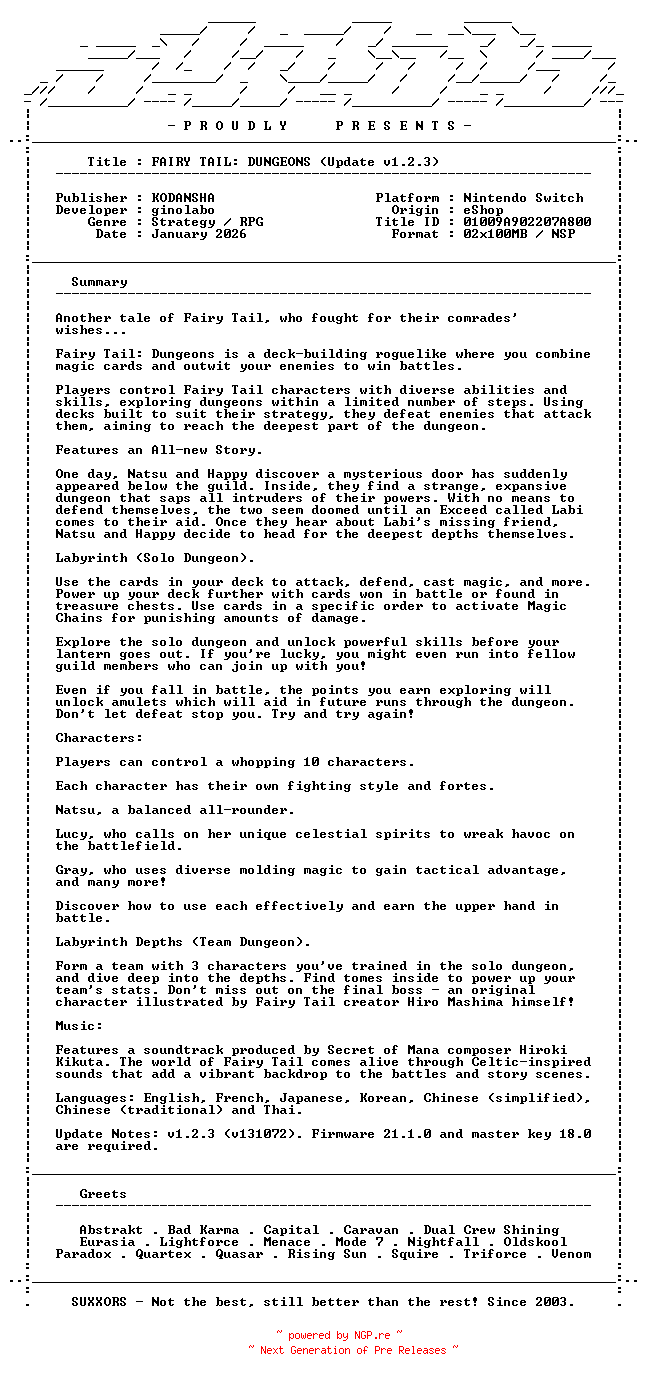 Titel: FAIRY_TAIL_DUNGEONS_Update_v1 2 3_NSW-SUXXORS