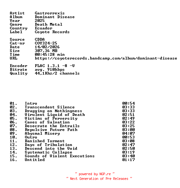 87484945 | FLAC | 86D | death/metal | 14.02.2026 09:00