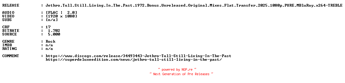 Jethro.Tull.Still.Living.In.The.Past.1972.Bonus.Unreleased.Original.Mixes.Flat.Transfer.2025.1080p.PURE.MBluRay.x264-TREBLE