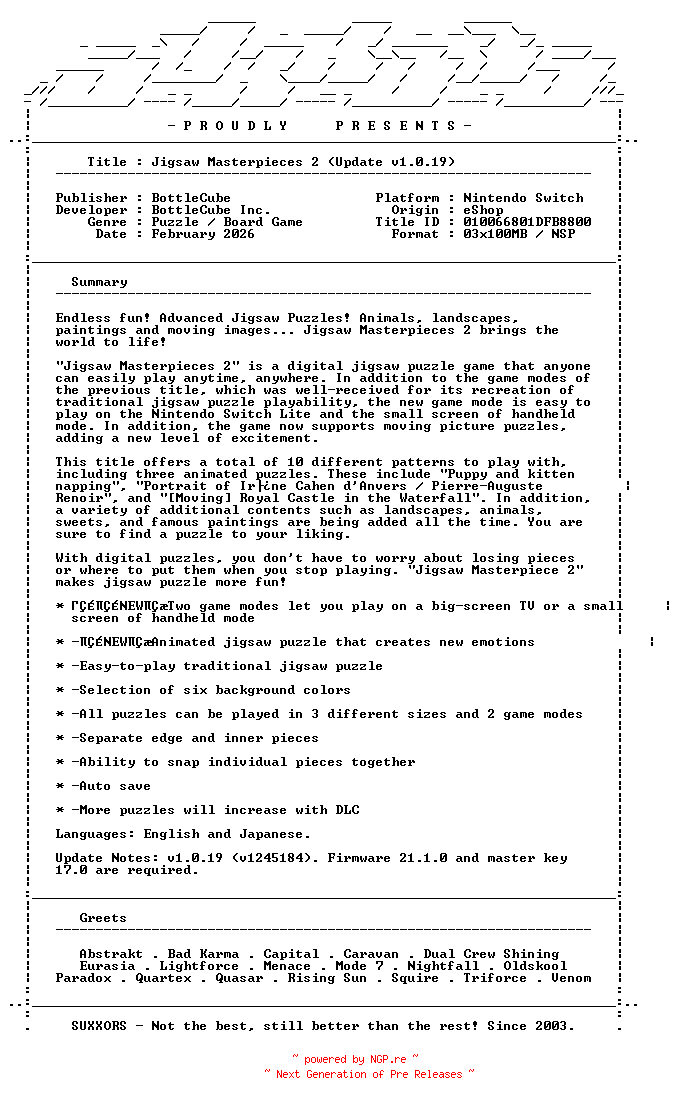 Titel: Jigsaw_Masterpieces_2_Update_v1 0 19_NSW-SUXXORS