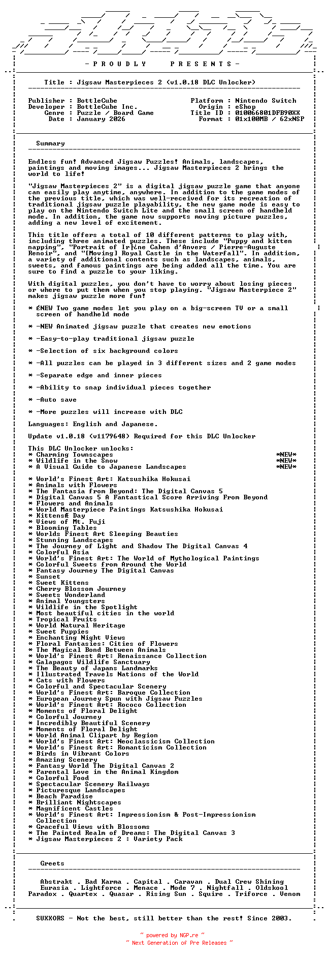 Titel: Jigsaw_Masterpieces_2_v1 0 18_DLC_Unlocker_NSW-SUXXORS