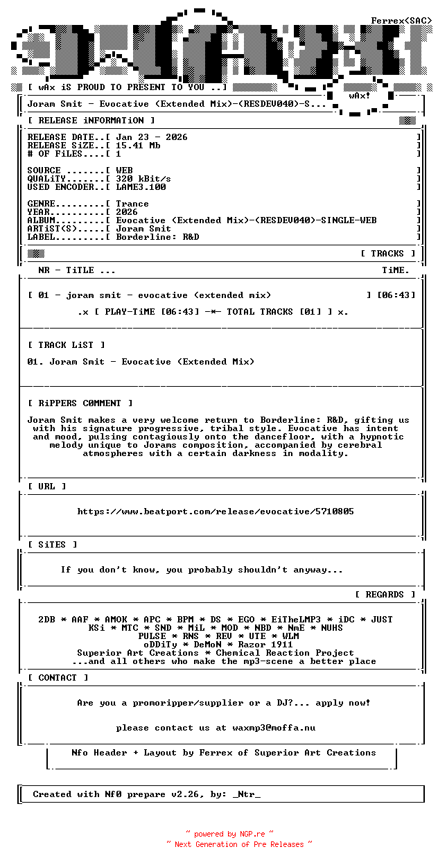 85913914 | MP3 | wAx | progressive/trance | 23.01.2026 20:04