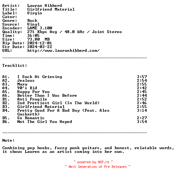 Titel: Lauran_Hibberd-Girlfriend_Material-LIMITED_EDITION-LP