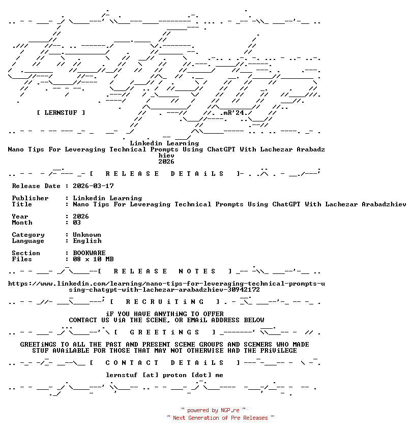Linkedin.Learning.-.Nano.Tips.For.Leveraging.Technical.Prompts.Using.ChatGPT.With.Lachezar.Arabadzhiev.2026.BOOKWARE-LERNSTUF