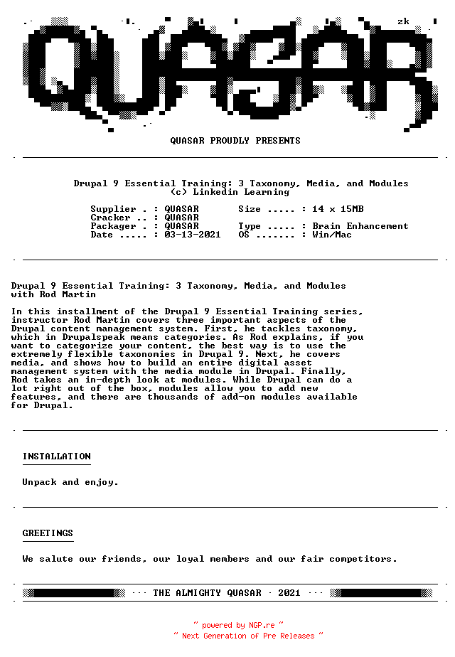 Linkedin.Learning.Drupal.9.Essential.Training.3.Taxonomy.Media.and.Modules-QUASAR