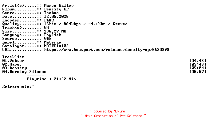 Titel: Marco_Bailey-Density_EP-MATERIA102-16BIT-WEB-FLAC