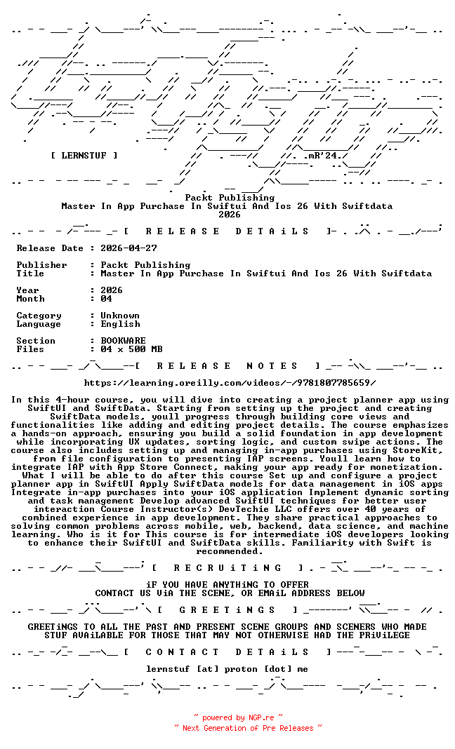 Titel: Packt Publishing - Master In App Purchase In Swiftui And Ios 26 With Swiftdata