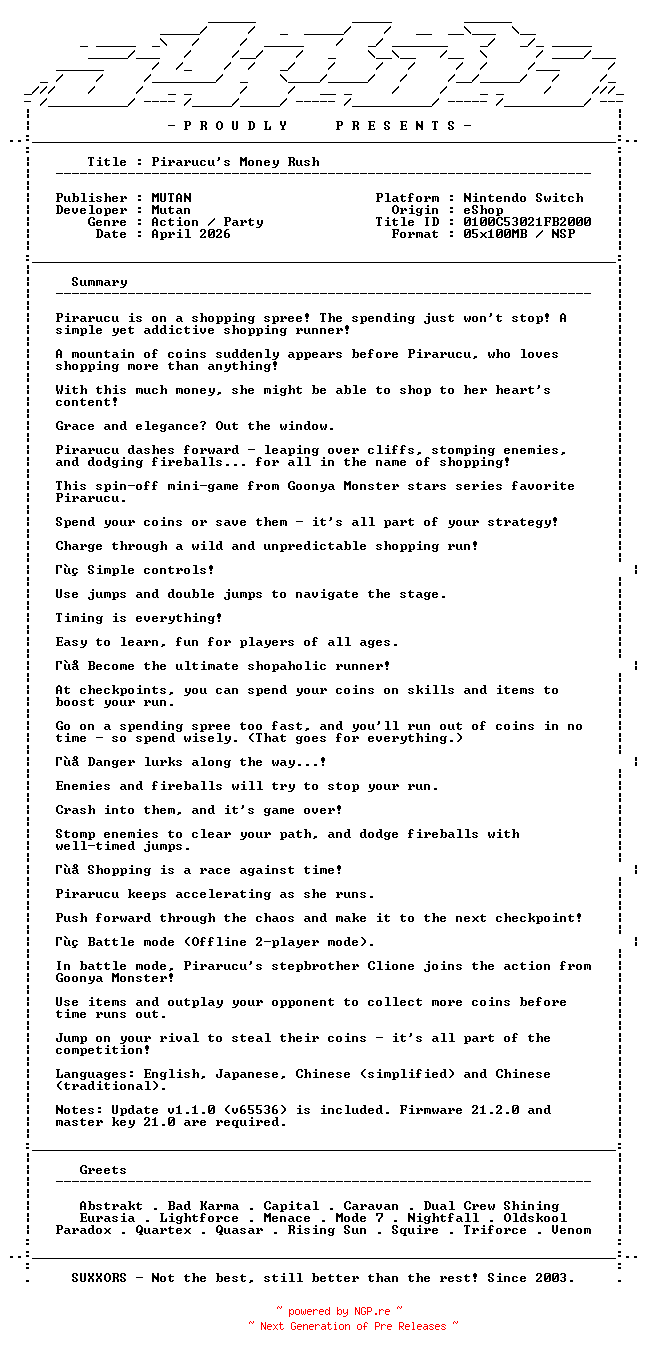 Titel: Pirarucus_Money_Rush_NSW-SUXXORS