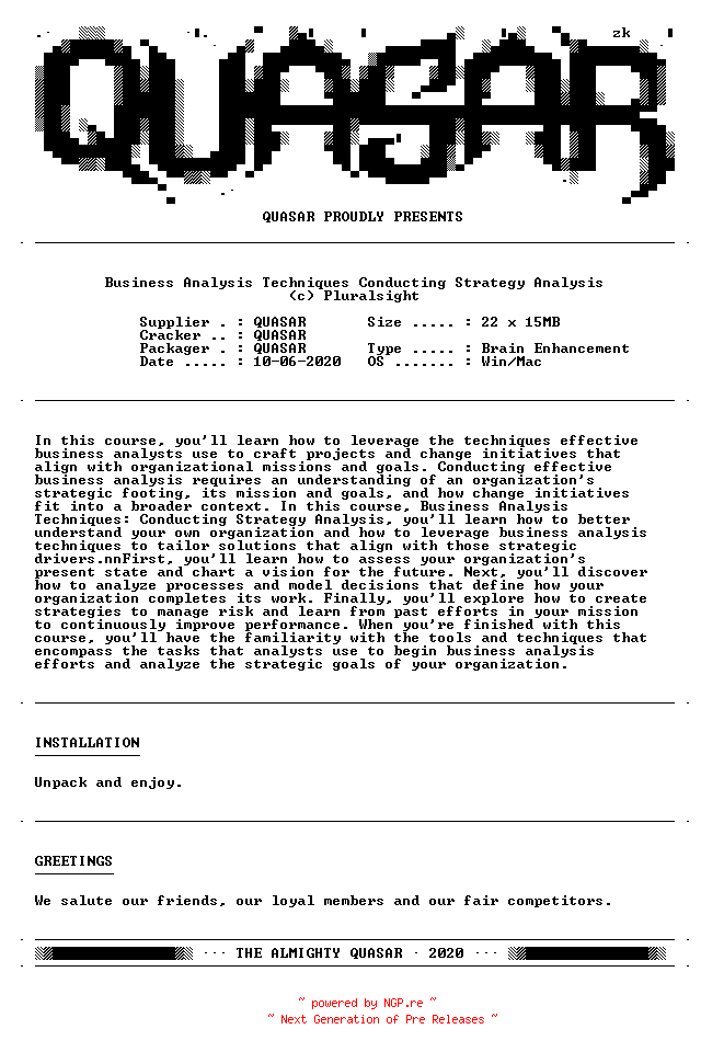 Pluralsight.Business.Analysis.Techniques.Conducting.Strategy.Analysis-QUASAR