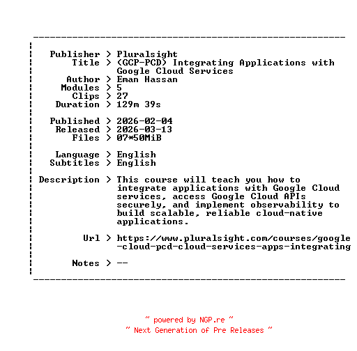 Pluralsight.GCP-PCD.Integrating.Applications.with.Google.Cloud.Services.2026.BOOKWARE-GETH