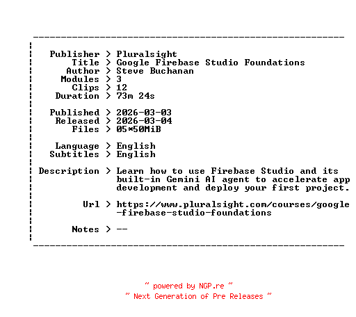 Titel: Pluralsight Google Firebase Studio Foundations