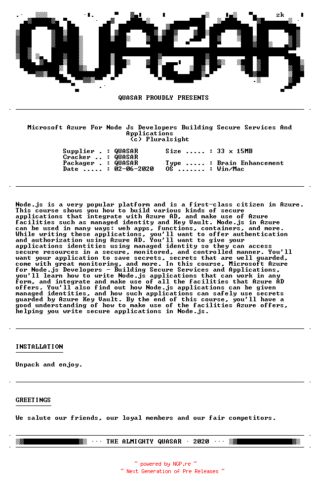 Titel: Pluralsight Microsoft Azure For Node Js Developers Building Secure Services And Applications-QUASAR