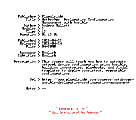 Pluralsight.NetDevOps.Declarative.Configuration.Management.with.Ansible.2026.BOOKWARE-GETH