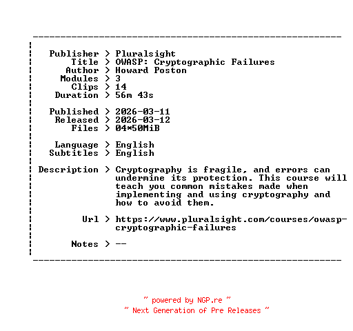 Pluralsight.OWASP.Cryptographic.Failures.2026.BOOKWARE-GETH