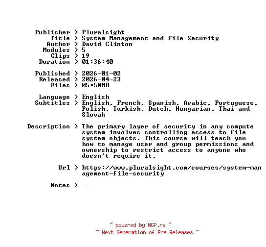 Pluralsight.System.Management.and.File.Security.2026.BOOKWARE-GETH