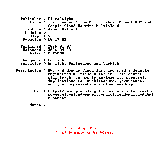 Pluralsight.The.Forecast.The.Multi.Fabric.Moment.AWS.and.Google.Cloud.Rewrite.Multicloud.2026.BOOKWARE-GETH
