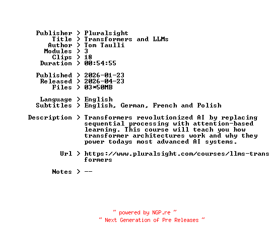 Titel: Pluralsight Transformers and LLMs