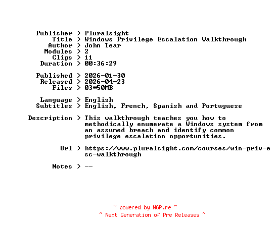Pluralsight.Windows.Privilege.Escalation.Walkthrough.2026.BOOKWARE-GETH