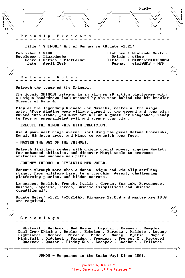 Titel: SHINOBI_Art_of_Vengeance_Update_v1 21_NSW-VENOM