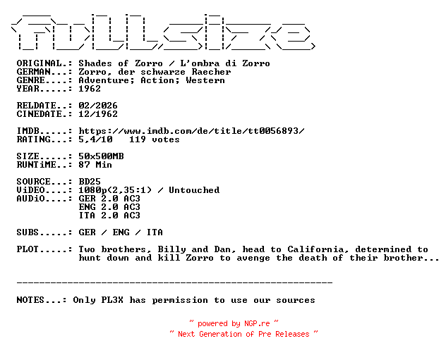 Titel: Shades of Zorro 1962 REMASTERED MULTi