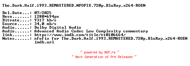 Titel: The Dark Half 1993 REMASTERED NFOFIX 720p BluRay x264-ROEN