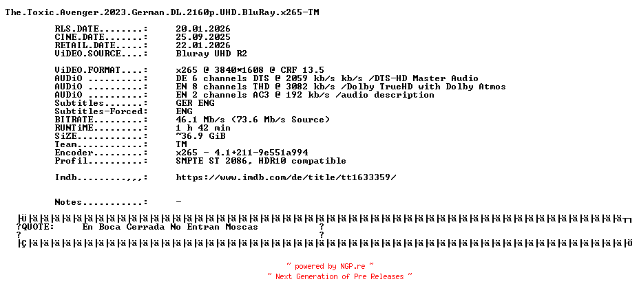 84717380 | BLURAY-X265 | TM | -//- | 20.01.2026 08:01