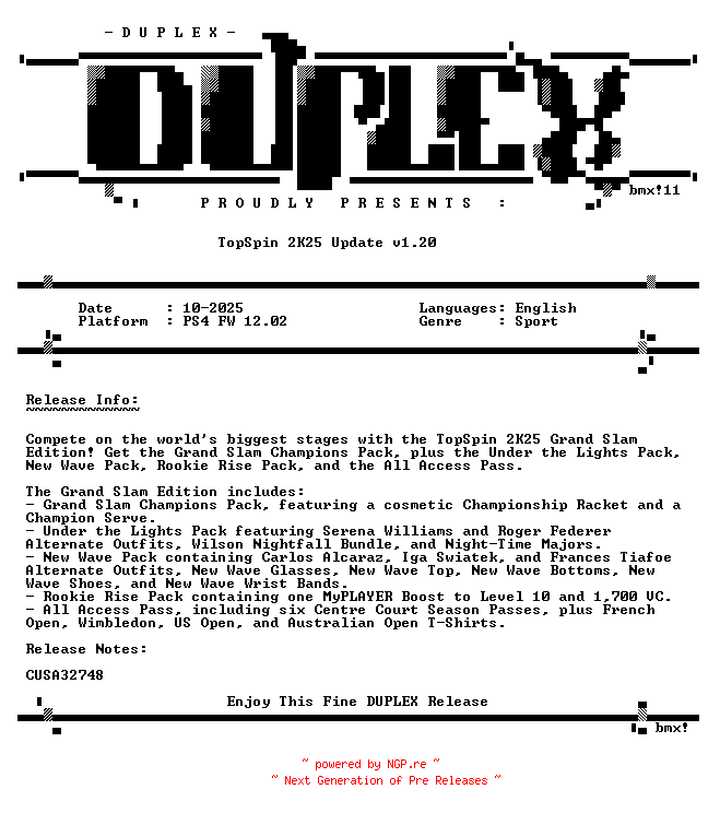Titel: TopSpin 2K25 Update v1 20 PS4-DUPLEX