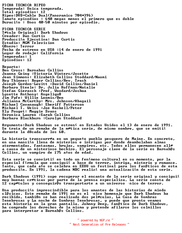 Titel: Vampiros Dark Shadows 103 DVB XViD MP3 1991 ES-iND