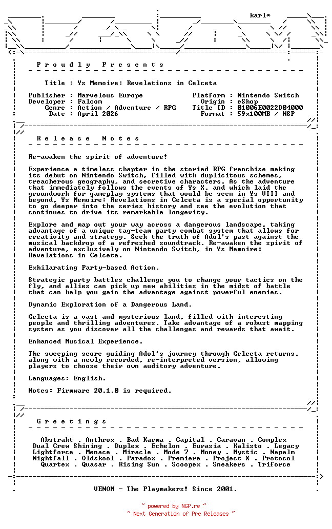 Titel: Ys_Memoire_Revelations_in_Celceta_NSW-VENOM