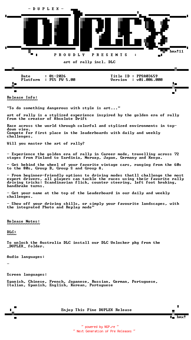 Titel: art of rally incl DLC PS5-DUPLEX