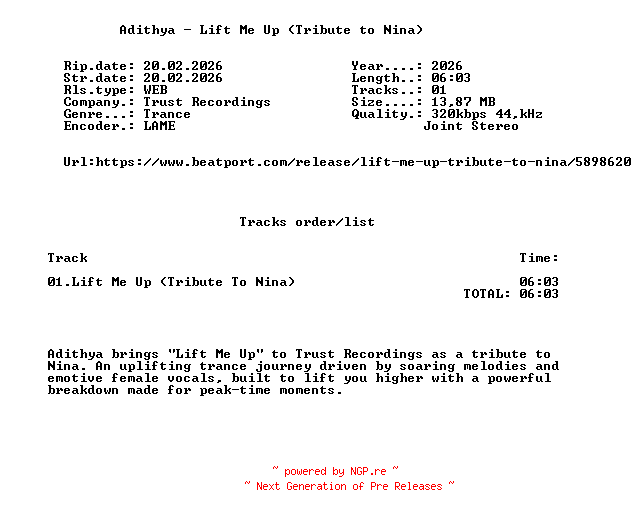 Titel: Adithya_-_Lift_Me_Up_(Tribute_To_Nina)-(TRST002)-SINGLE-WEB
