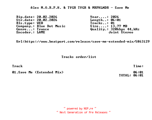 Titel: Alex_M O R P H _And_TYGR_TYGR_And_MRPHLNDR_-_Save_Me-(BDM5705E)-SINGLE-WEB