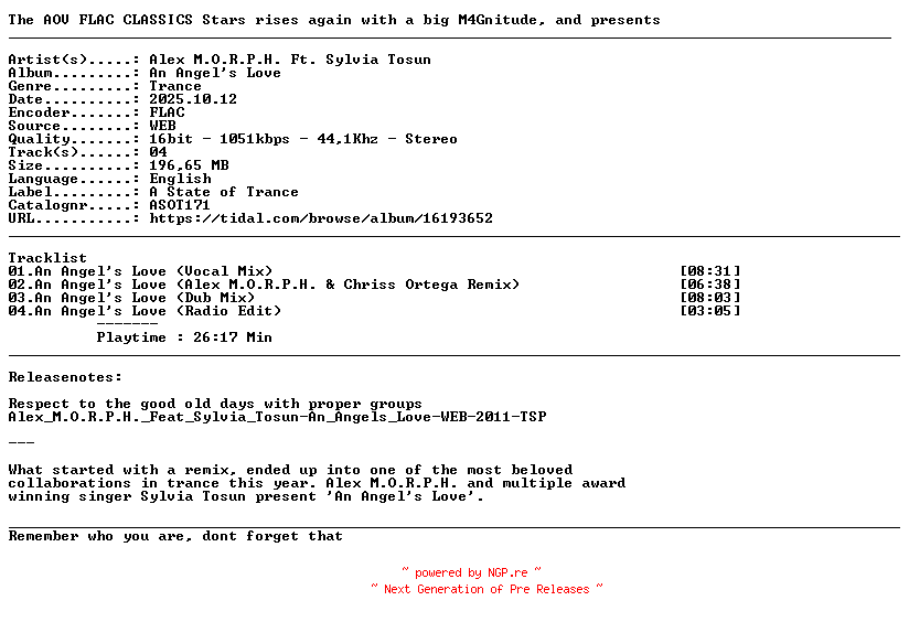 Titel: Alex_M O R P H _Ft _Sylvia_Tosun-An_Angels_Love-(ASOT171)-16BIT-WEB-FLAC