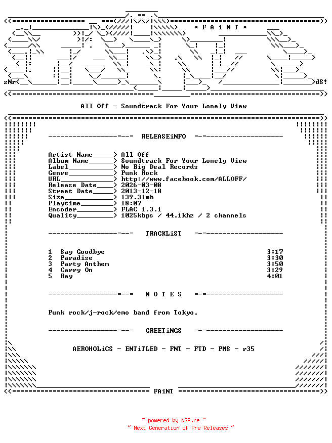 All_Off-Soundtrack_For_Your_Lonely_View-CDEP-FLAC-2013-FAiNT