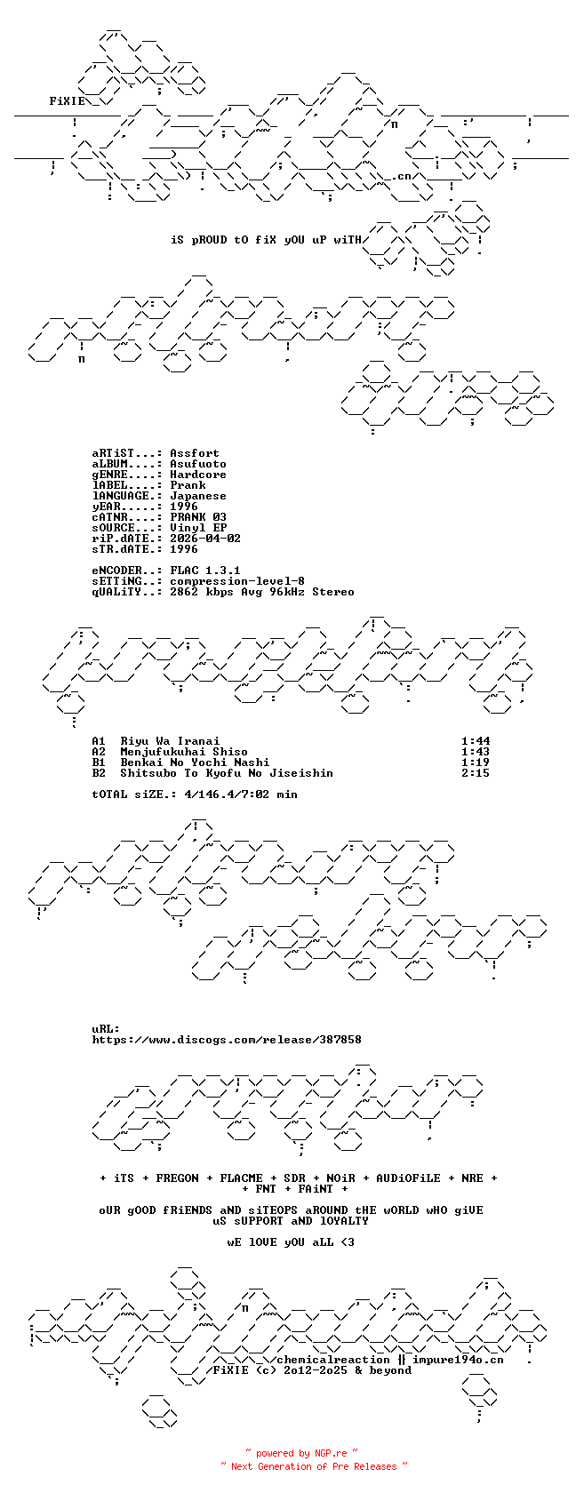 Titel: Assfort-Asufuoto-JP-EP-FLAC-1996-FIXIE