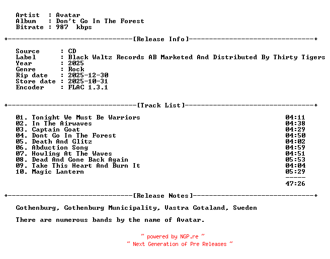 Titel: Avatar-Dont_Go_In_The_Forest-CD-FLAC