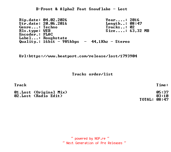 Titel: B-Front_And_Alpha2_Feat_Snowflake-Lost-(ROUGH032)-16BIT-WEB-FLAC