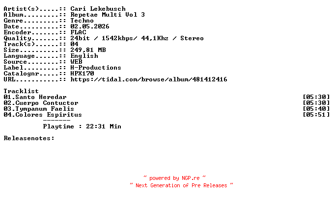 Titel: Cari_Lekebusch-Repetae_Multi_Vol_3-HPX170-24BIT-WEB-FLAC