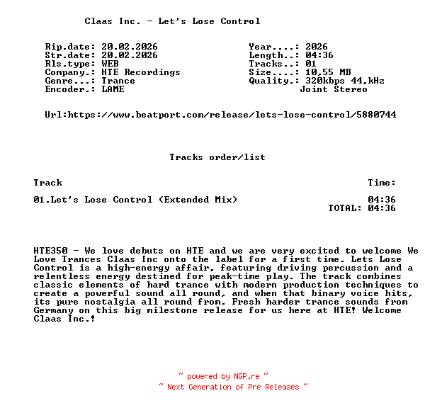 Titel: Claas_Inc _-_Lets_Lose_Control-(HTE350)-SINGLE-WEB