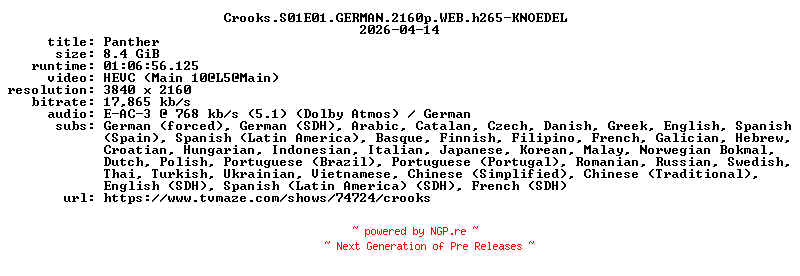 91337047 | TV-X264 | KNOEDEL | Action/Crime/Drama | 14.04.2026 11:53