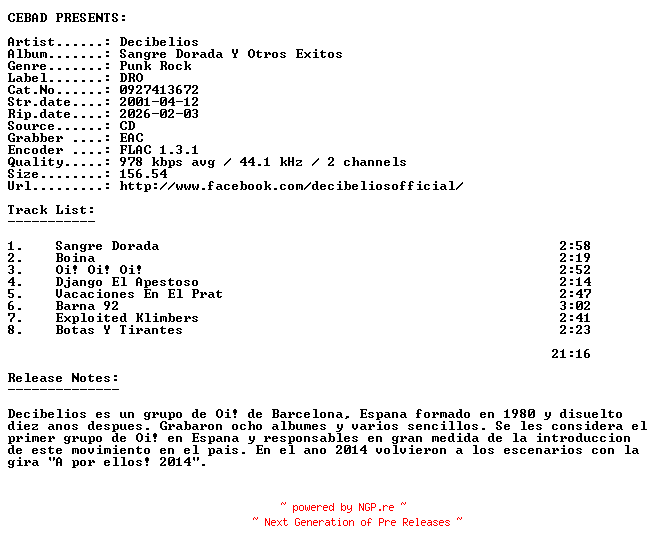 Titel: Decibelios-Sangre_Dorada_Y_Otros_Exitos-(0927413672)-ES-CD-FLAC
