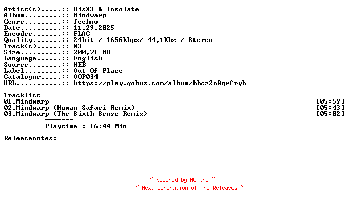 Titel: DisX3_And_Insolate-Mindwarp-OOP034-24BIT-WEB-FLAC
