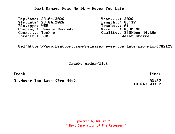 Titel: Dual_Damage_Feat_Mc_DL_-_Never_Too_Late-(RAVAGEPRO053)-SINGLE-WEB